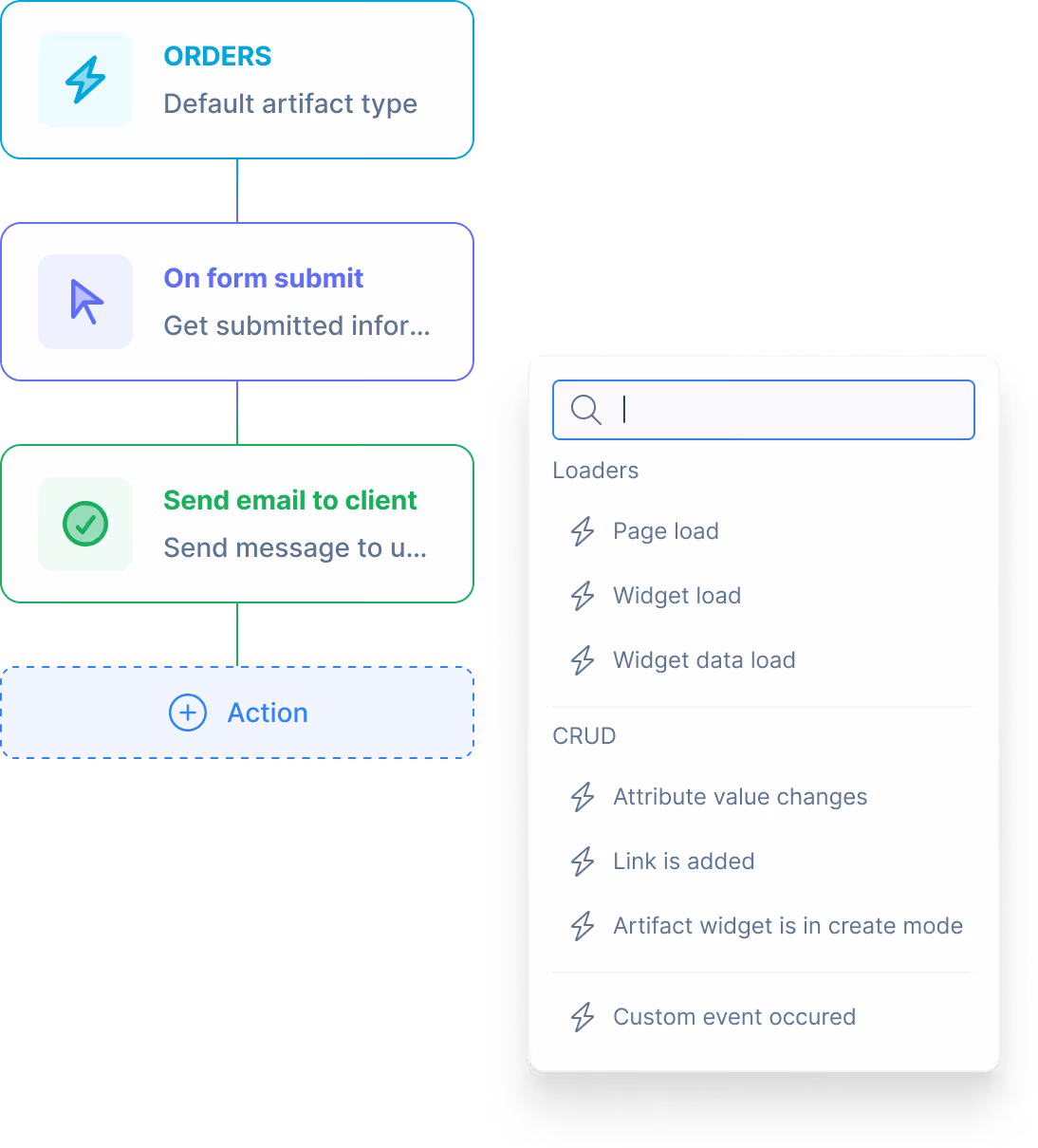 Every type and relationship integrates directly with backend workflows. Define triggers, automate processes, and bring your data to life.